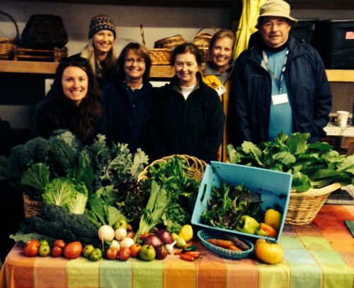 We are glad the weather is warming back up again so we can keep our fresh veggies coming home to your plate. Below there is a great photo from last week's Thursday distribution - the volunteer team with Josie were all pretty happy with the bounty of 15 items in one week! Thanks to our fantastic growers for all their hard work!