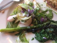 With summer at full tilt and the Chatfield gardens likewise, our veggie bags runneth over. This week’s distribution included the usual salad mix, a variety of greens and herbs … plus beans, cauliflower, cukes, carrots and an onion. In addition, we received an array of potential roasters: purple potatoes, beets, pattypan squash, peppers, turnips and eggplant.
